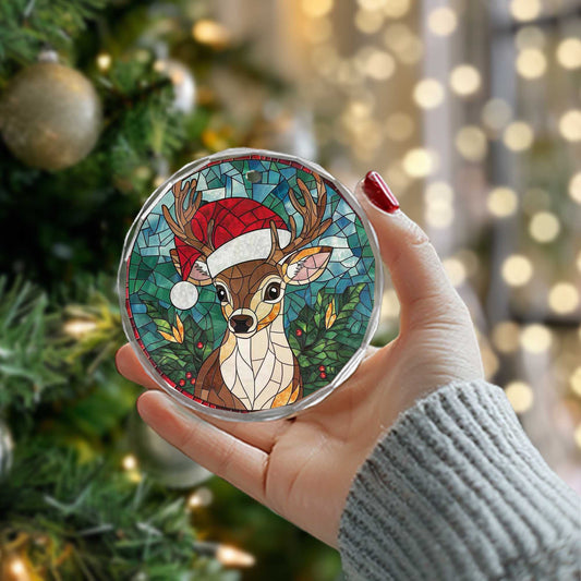 Netecom Reindeer with Santa Hat Stained Glass Orname...