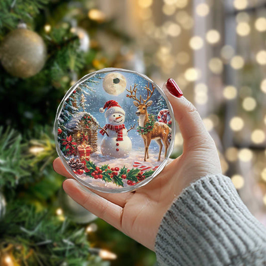 Netecom Snowman & Reindeer Holiday Glass Ornament – ...