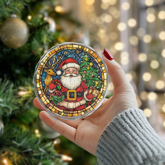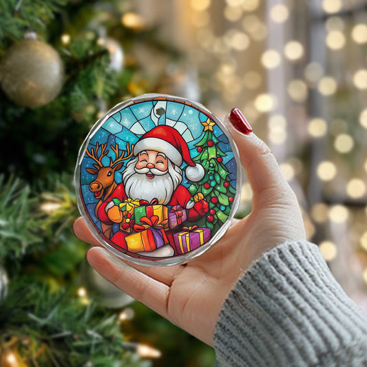 Netecom Santa Claus & Reindeer Stained Glass Ornamen...