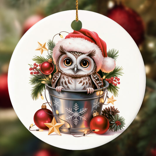 Netecom Cute Owl in Bucket Ornament, Owl with Santa ...