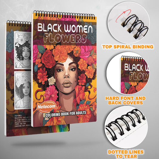 Black Women Flowers Spiral Bound Coloring Book, Cele...