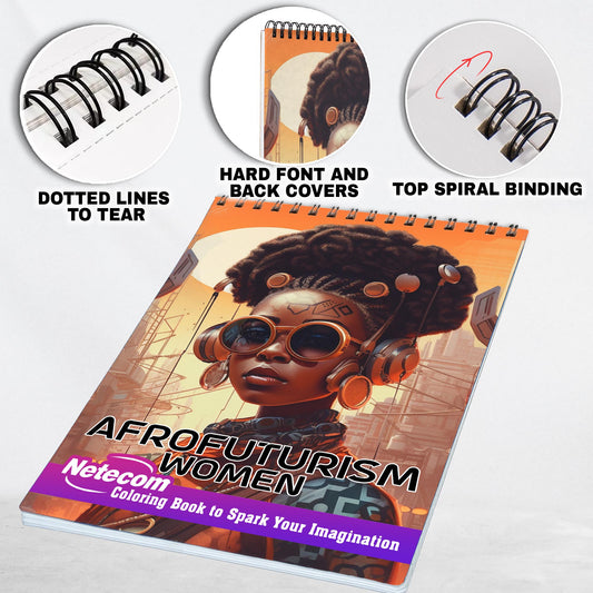 Afrofuturism Women Spiral Bound Coloring Book: 30 Br...
