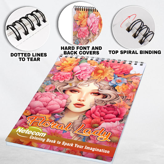 Netecom Floral Lady Spiral Bound Coloring Book, 30 C...