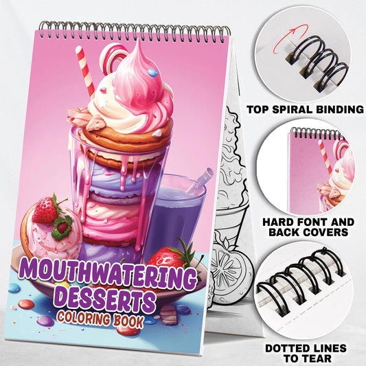 Mouthwatering Desserts Spiral Bound Coloring Book, C...