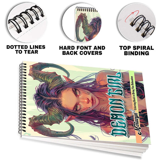 MOTAVYN Demon Girl Coloring Book for Adults, Spiral ...