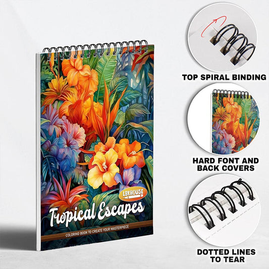 LBKHOUSE Tropical Escapes Coloring Book Spiral Bound...