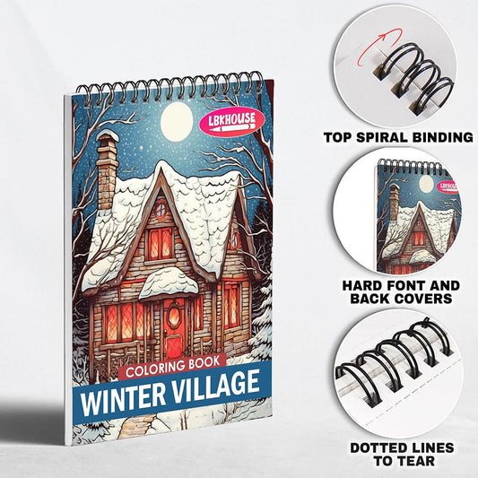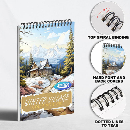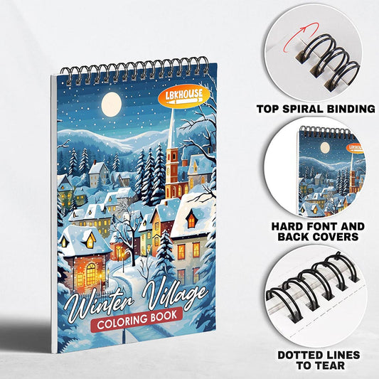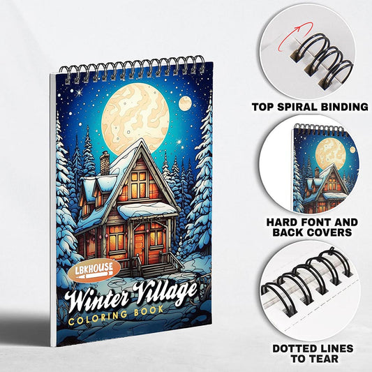LBKHOUSE Winter Village Coloring Book Spiral Bound f...