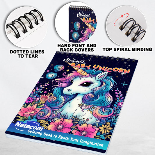 Midnight Baby Unicorn Spiral Bound Coloring Book, Un...