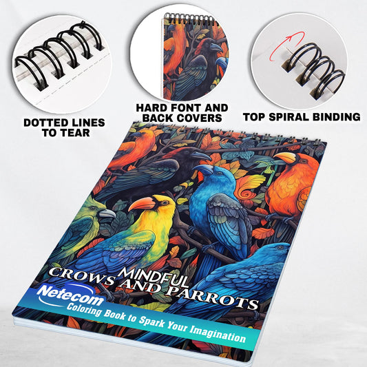 Mindful Crows And Parrots Spiral Bound Coloring Book...