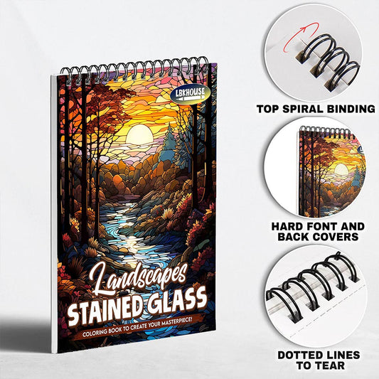 LBKHOUSE Landscapes Stained Glass Coloring Book Spir...