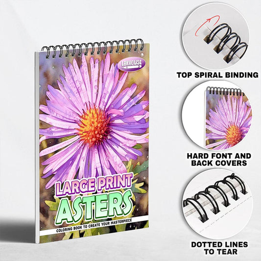 LBKHOUSE Large Print Asters Coloring Book Spiral Bou...