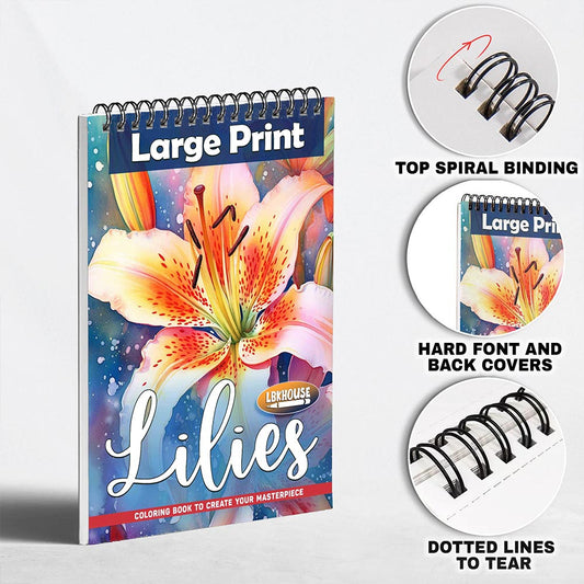 LBKHOUSE Large Print Lilies Coloring Book Spiral Bou...