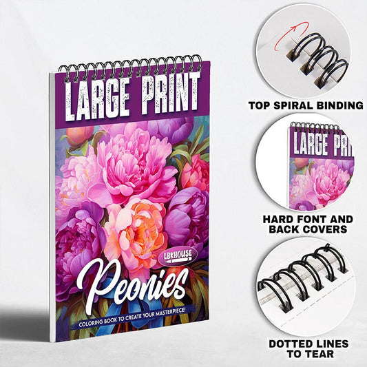 LBKHOUSE Large Print Peonies Coloring Book Spiral Bo...