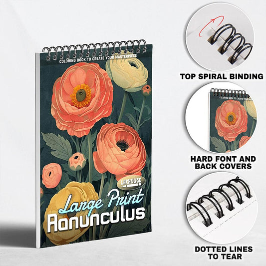 LBKHOUSE Large Print Ranunculus Coloring Book Spiral...
