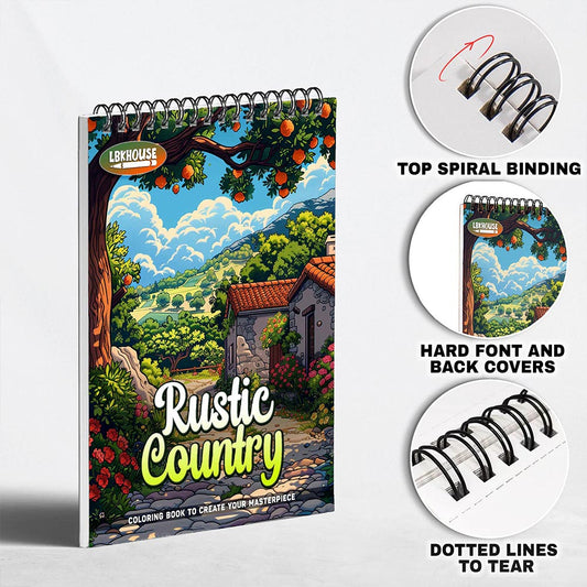 LBKHOUSE Rustic Country Coloring Book Spiral Bound f...