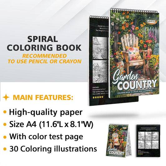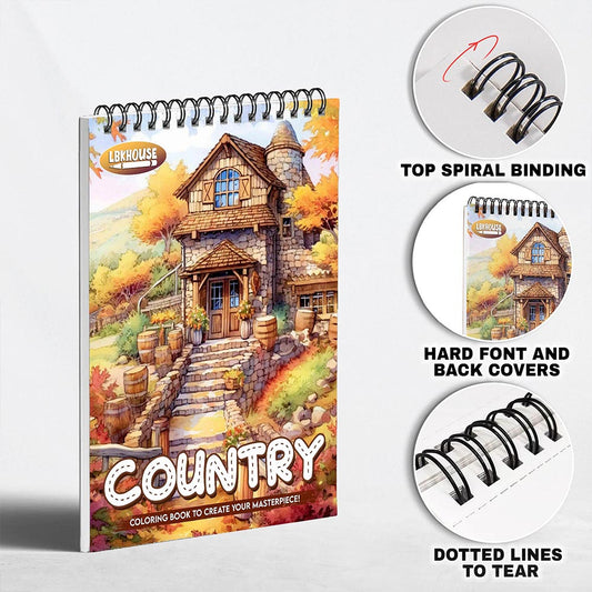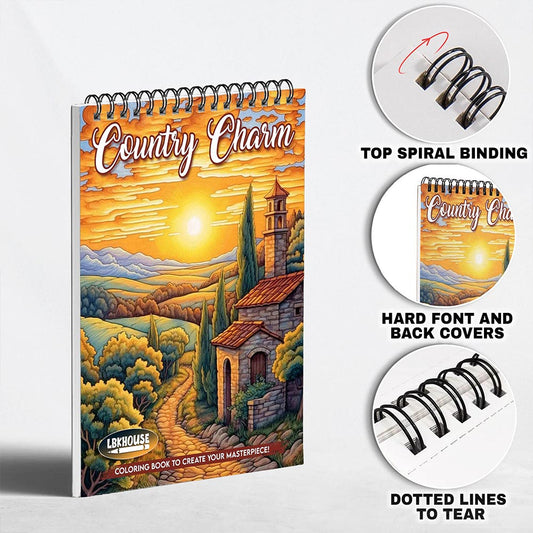 LBKHOUSE Country Charm Coloring Book Spiral Bound fo...