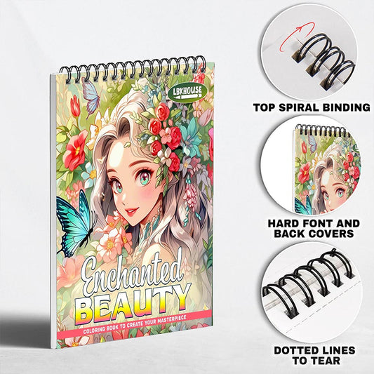 LBKHOUSE Enchanted Beauty Coloring Book Spiral Bound...