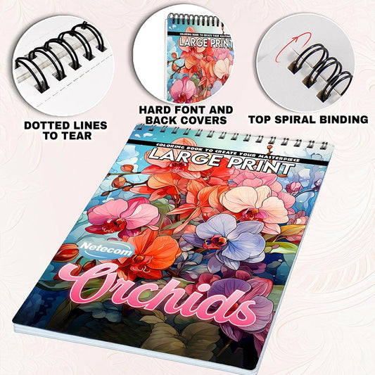 Netecom Large Print Orchids Coloring Book Spiral Bou...