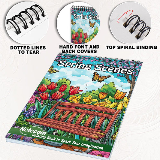 Netecom Spring Scenes Coloring Book Spiral Bound for...