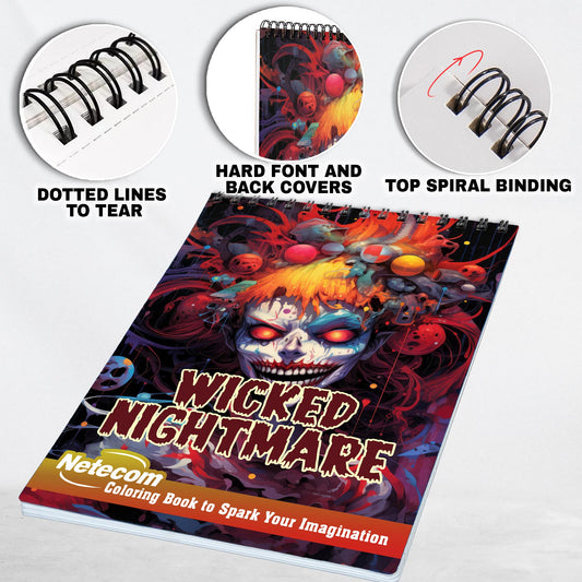 Wicked Nightmare Spiral Bound Coloring Book, Dive into the Abyss of Wicked Nightmares with this Coloring Adventure