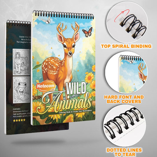Wild Animals Spiral Bound Coloring Book, Majestic Wild Animals for a Safari Adventure, Ideal for Wildlife Enthusiasts and Nature Lovers