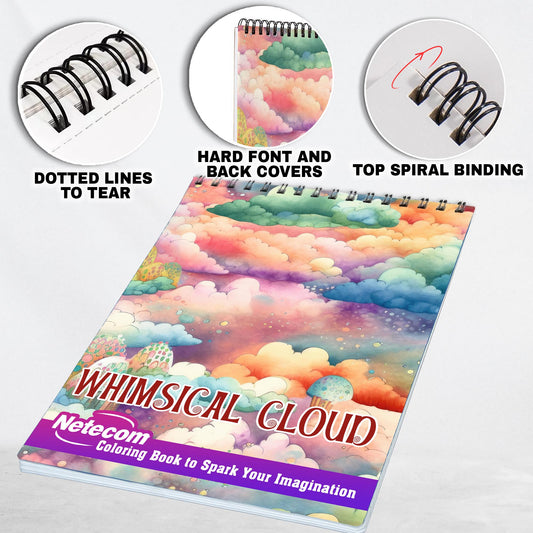 Whimsical Cloud Spiral Bound Coloring Book, Experience 30 Coloring Pages Filled with Tranquil Cloud Patterns and Fluffy Forms