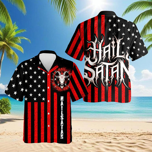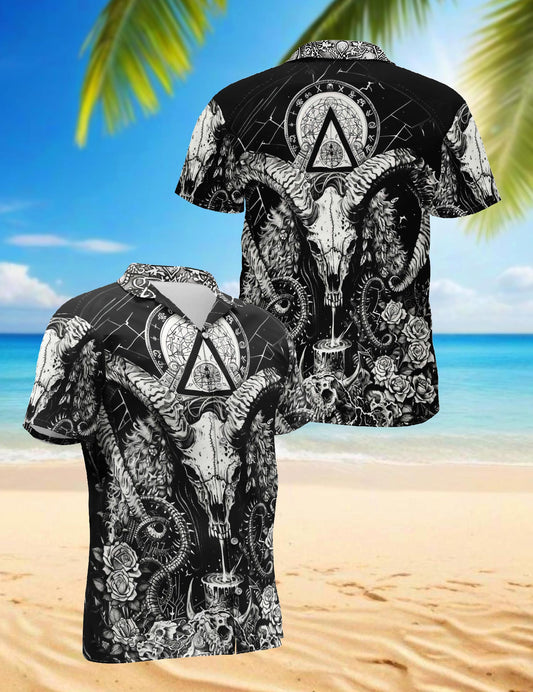 Vintage Satanic Pagan Demon Aloha Shirt for Men – Occult Beach Summer Button Down Short Sleeve Top