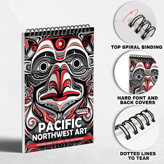 LBKHOUSE Pacific Northwest Art Coloring Book Spiral Bound for Adults, Premium Cover