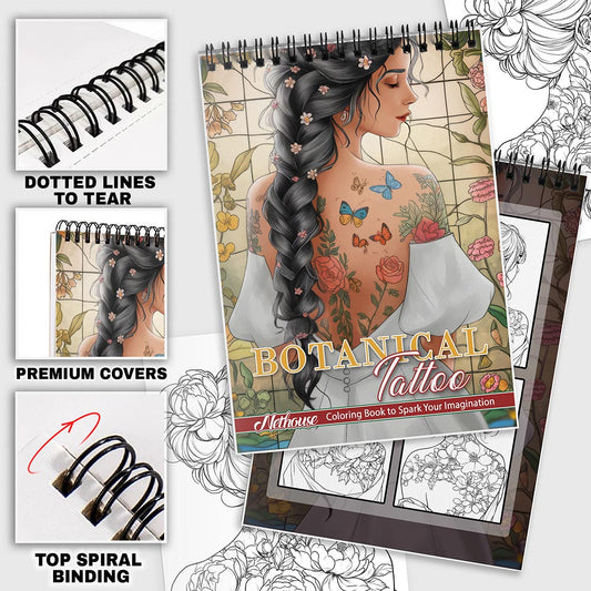 NETHOUSE Botanical Tattoo Coloring Book For Adults Relaxation & Stress Relief, 30 Coloring Pages of Elegant Botanical Tattoo Designs, Intricate Line Art, Floral Motifs and Nature-Inspired Ink Patterns