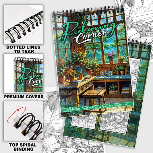 NETHOUSE Relaxing Corner Coloring Book For Adults Relaxation & Stress Relief, 30 Coloring Pages of Cozy Nooks, Peaceful Indoor Spaces, Tranquil Reading Corners, and Serene Home Retreats