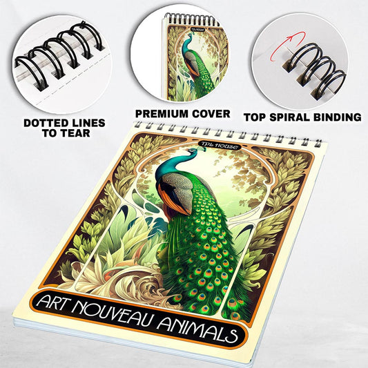 TPLHOUSE Art Nouveau Animals Spiral Coloring Book for Adults Relaxation & Stress Relief, 30 Coloring Pages of Art Nouveau Animals, Ornate Patterns, and Elegant Wildlife Designs.