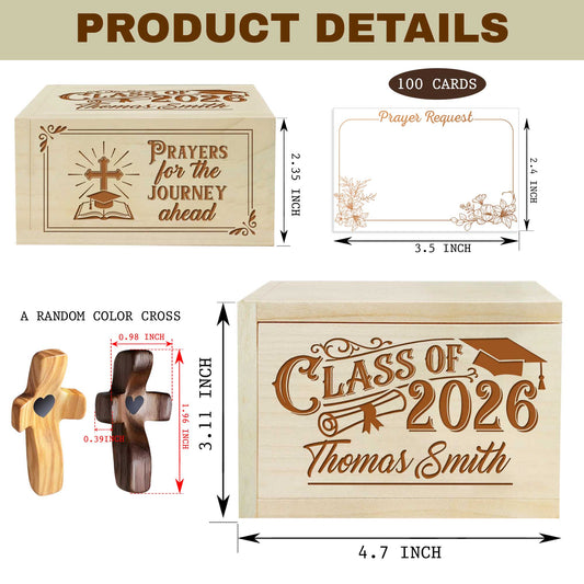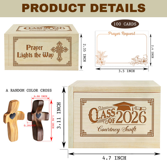Netecom Custom Graduation Prayer Box with Name & Year on Box, Personalized Name on Cross, 100 Prayer Request Cards, Christian Faith Gift for Reflection