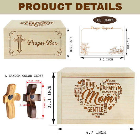 Netecom Personalized Mom Prayer Box with Custom Name Cross and 100 Prayer Request Cards, Christian Gift for Mom, Faith-Inspired Keepsake