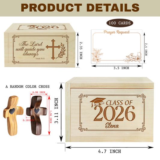 Netecom Personalized Graduation Prayer Box with Custom Name & Year on Box, Custom Name on Cross, 100 Prayer Cards, Faith-Based Christian Keepsake Gift