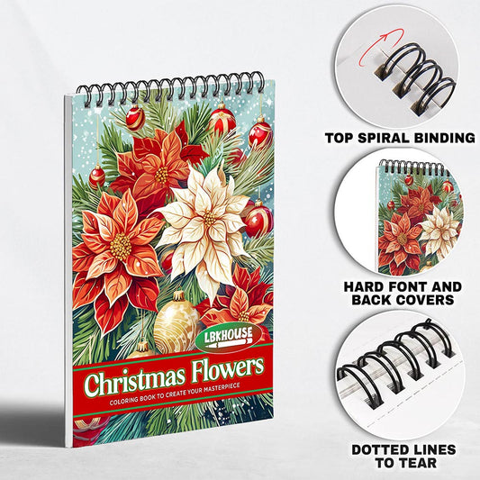 LBKHOUSE Christmas Flowers Coloring Book Spiral Boun...