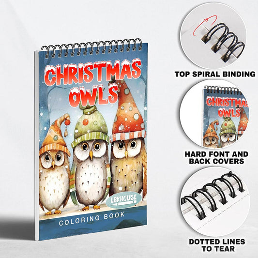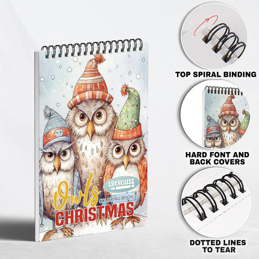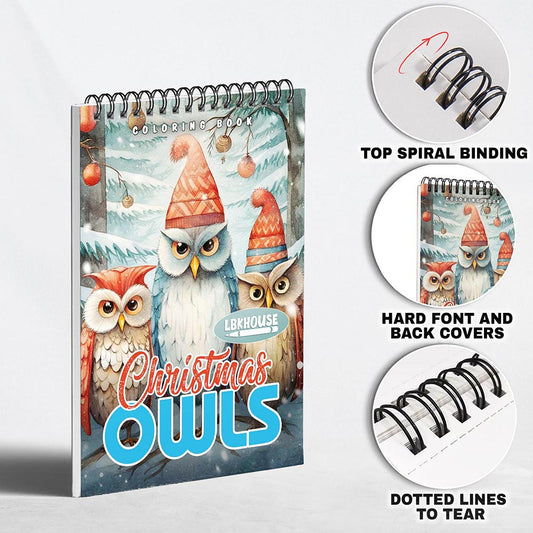 LBKHOUSE Christmas Owls Coloring Book Spiral Bound f...