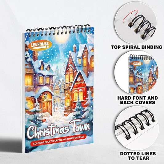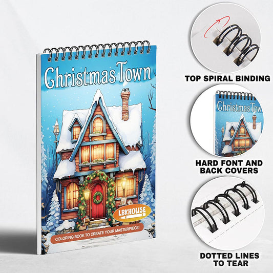 LBKHOUSE Christmas Town Coloring Book Spiral Bound f...