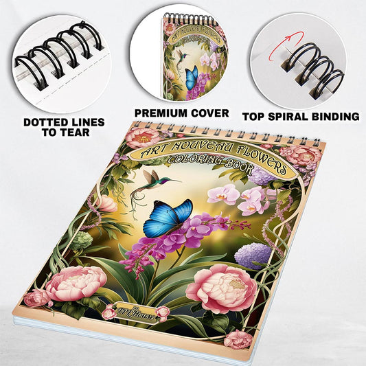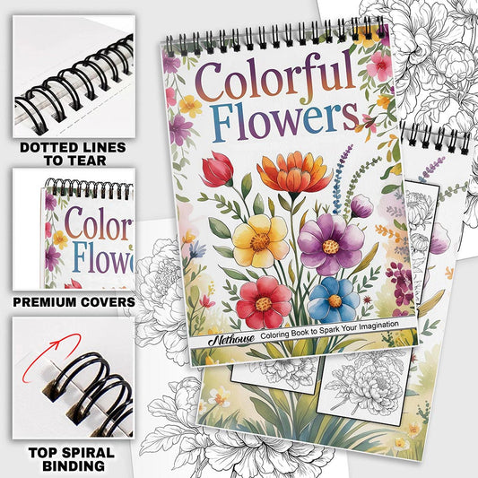 NETHOUSE Colorful Flowers Spiral Coloring Book for A...