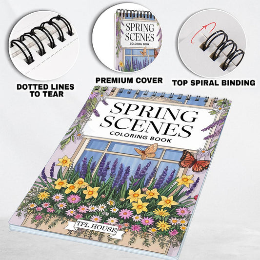 TPLHOUSE Spring Scenes Spiral Coloring Book for Adul...