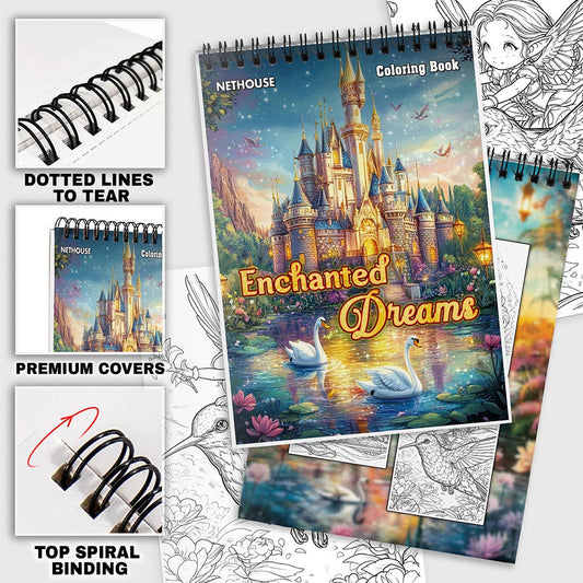 NETHOUSE Enchanted Dreams Spiral Coloring Book for A...
