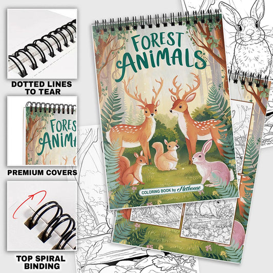 NETHOUSE Forest Animals Spiral Coloring Book for Adu...