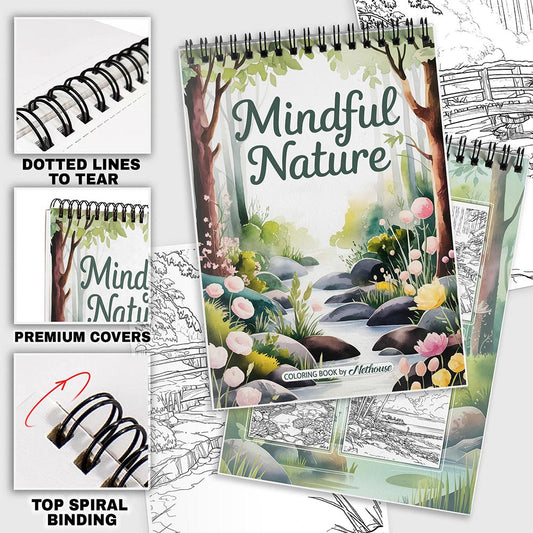 NETHOUSE Mindful Nature Spiral Coloring Book for Adu...