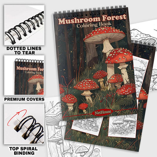 NETHOUSE Mushroom Forest Spiral Coloring Book for Ad...