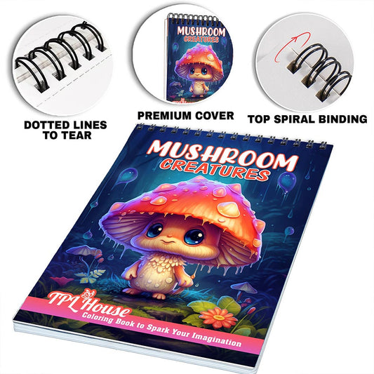 TPLHOUSE Mushroom Creatures Spiral Coloring Book for...