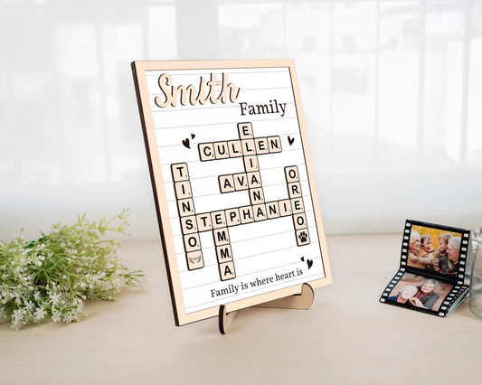 Netecom Personalized Scrabble Family Name Frame Crossword Puzzle Sign with Grandkids Names Custom Wooden Gift for Grandparents Home Decor