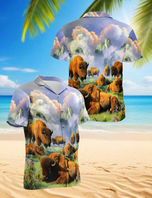 Netecom American Bison At Sunrise Hawaiian Shirt for...