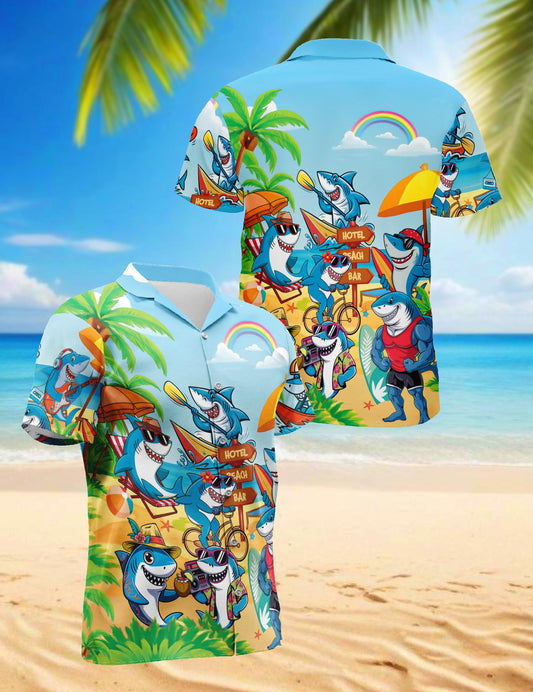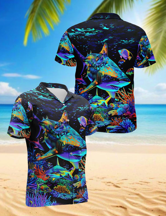 Netecom Colorful Shark Hawaiian Shirt for Men, Ocean...