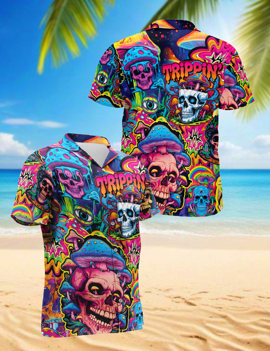 Netecom Mushroom Skull Trippy Hawaiian Shirt for Men...
