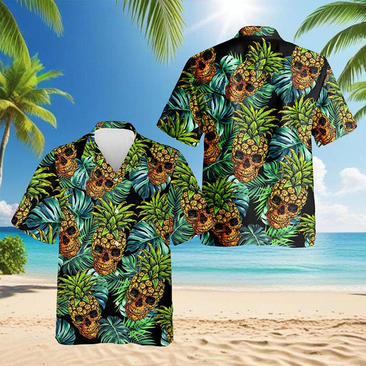 Netecom Skull Pineapple Hawaiian Shirt for Men, Trop...