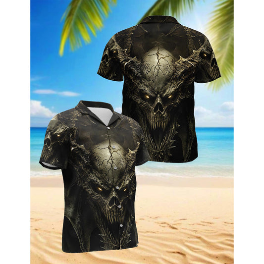 Netecom Gothic Dragon on Mutated Skull Hawaiian Shir...